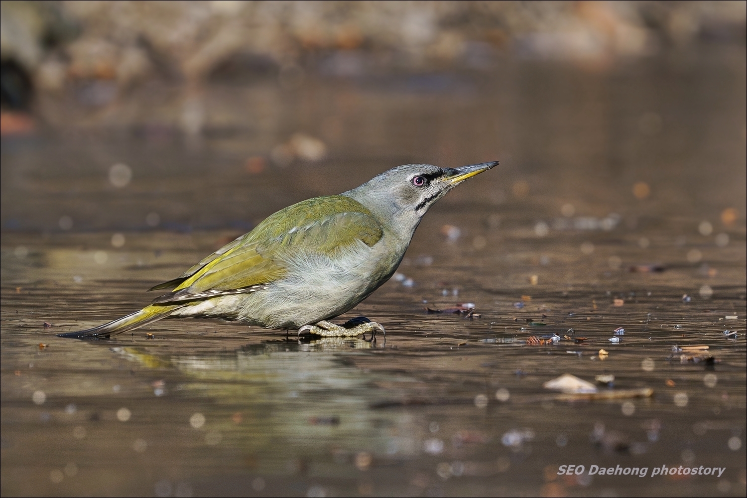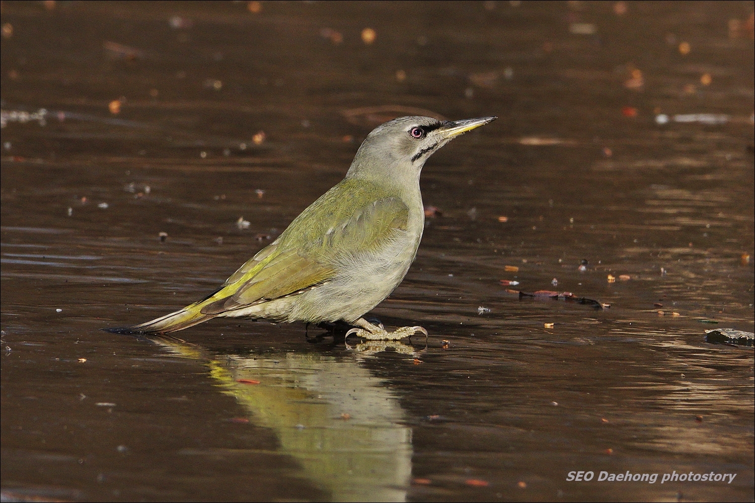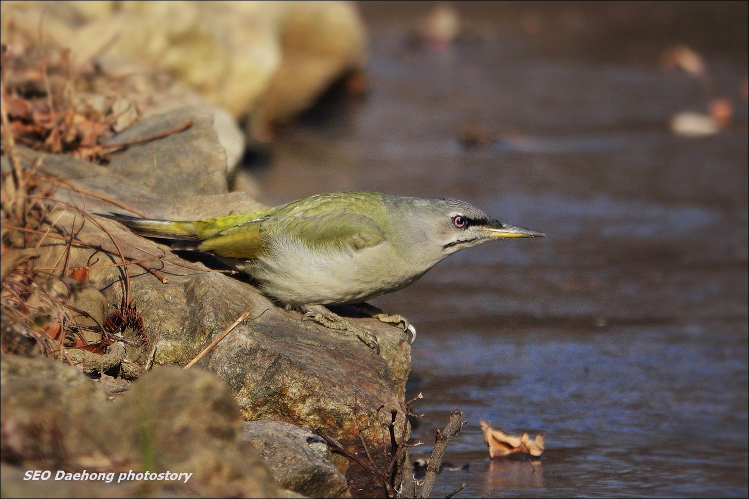 얼음판 위로 물을 마시러 내려온...... 청딱따구리 암컷 한 마리~!